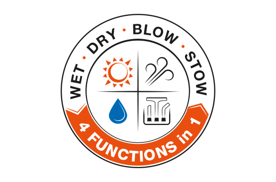 Пылесос сочетает в себе 4 функции, расширяя сферы применения: • Сухая уборка и сбор сухого мусора • Влажная уборка и сбор воды • Выдувание • Хранение аксессуаров
