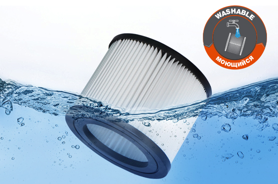 Система фильтрации с HEPA фильтром обеспечивает удержание до 99,9% частиц пыли. Фильтр легко моется и после высыхания опять готов к работе.