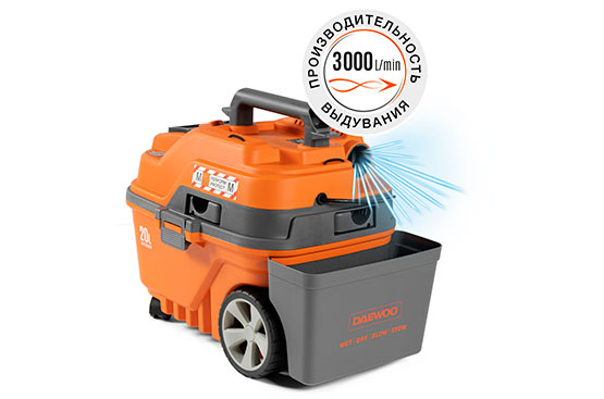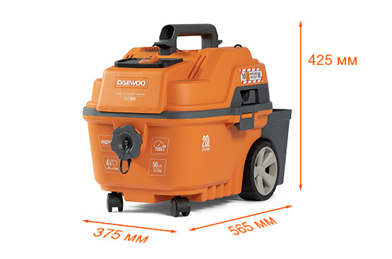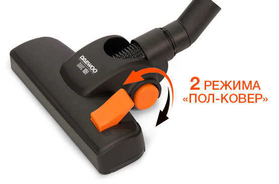 Электрический двигатель DAEWOO мощностью 1500 Вт в сочетании с высокопроизводительной турбиной обеспечивают разряжение 250 мбар и высокую производительность уборки.