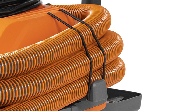 Специальные крепления на корпусе пылесоса позволяют удобно смотать шланг для компактного хранения.